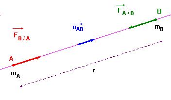b)- L’Astre de masse M est soumis à une force d’origine gravitationnelle de la part du corps de masse m.