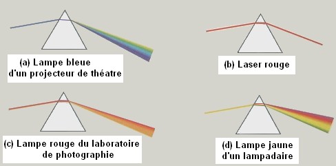 rouge) (une seule radiation) - Lumières polychromatiques : expériences (a), (c)