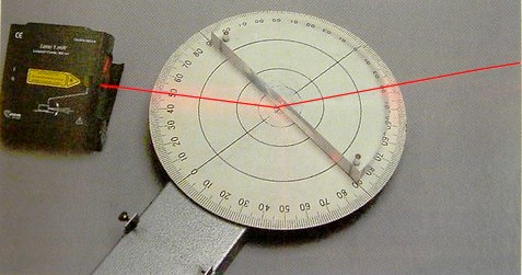 On remplit un aquarium d’eau. On éclaire la surface de l’eau avec un laser rouge. a)- On oriente le laser perpendiculairement à la surface de l’eau. Quelle est la valeur de l’angle d’incidence ? b)- À l’aide de la deuxième loi de Descartes, en déduire la valeur de l’angle de réfraction. c)- On éclaire maintenant la surface de l’eau avec une incidence de 45 °. On mesure l’angle de réfraction ; on trouve 32 °. En déduire la valeur de l’indice de l’eau. |