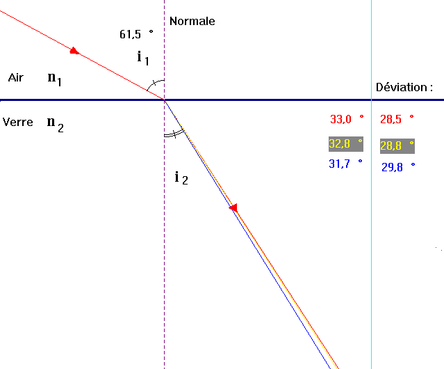 pour la radiation bleue : - La deuxième loi de Descartes appliquée au point