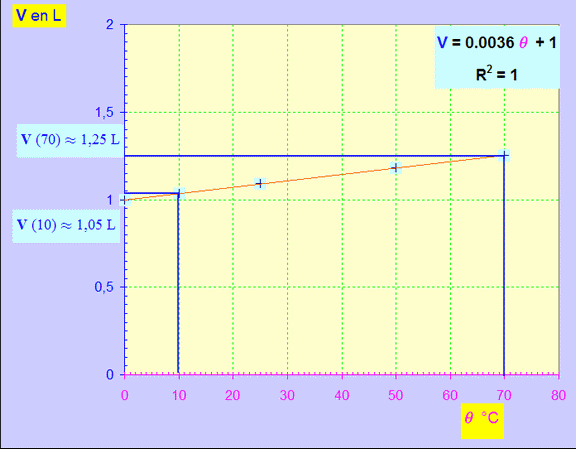 d)- En déduire le volume occupé par l’air à 10 °C et 70 °C. |