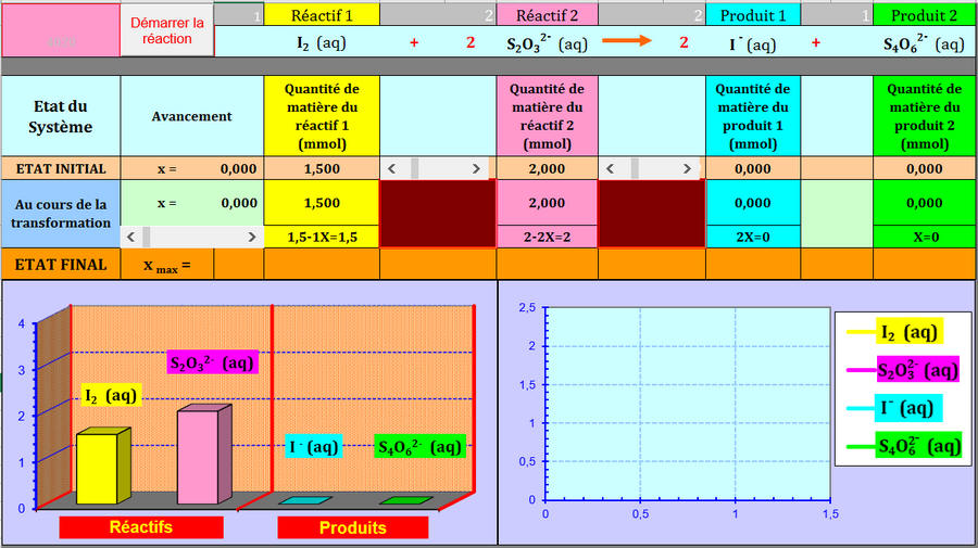 Lorsque la transformation chimique s’effectue, x croît de zéro à une valeur maximale x max .