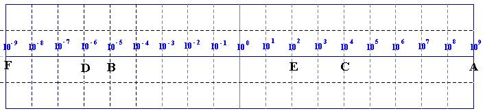 4)- Echelle adaptée : non linéaire. On peut représenter sur cette échelle de grands nombres à côté de petits nombres. Cliquer sur l'image pour l'agrandir |