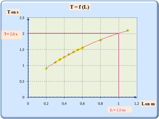 - Graphiquement, à l’aide de la courbe, on peut déterminer la valeur de la longueur du pendule associé,