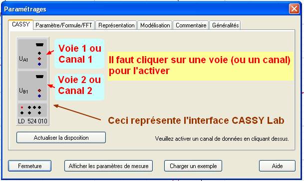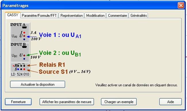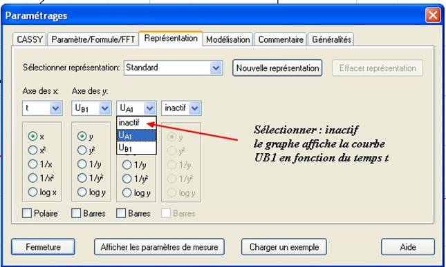 - Pour activer la voie 1, UA1, il faut cliquer dessus, faire de même pour activer la voie 2, UB1 :
