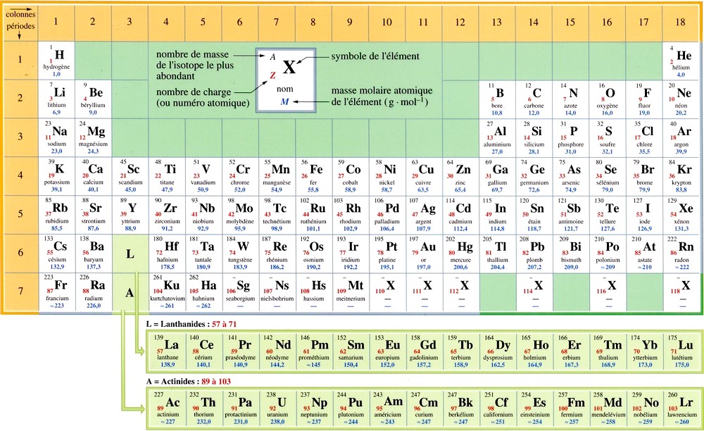 - Les éléments sont classés par numéro atomique Z croissant.