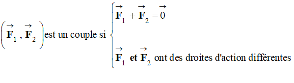 Un ensemble de deux forces égales et opposées, de droites d'action différentes constitue un couple capable de faire tourner l'objet sur lequel il agit.