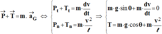 - Expression de la valeur de la tension T en fonction de θ, v, m et g à l’instant t.