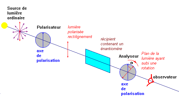 - deux énantiomères n'ont pas le même effet sur la lumière polarisé rectilignement.