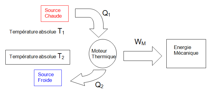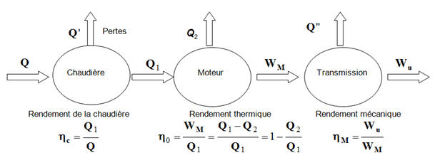 - Une partie de la quantité de chaleur Q1 est transformée en travail mécanique Wm.