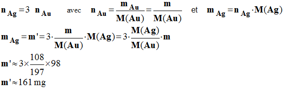 constate que la masse de l'électrode d'or a varié de m = 98 mg.
