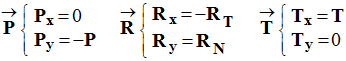 2)- Déterminer la valeur de chacune des forces agissant sur le cube (g = 10 N / kg). - Le cube est en équilibre, d'après le principe de l'inertie, il est soumis à des forces dont les effets se compensent : - Valeurs des différentes forces : - Valeur du poids de l’objet : - P = M.g =20 N - Tension du fil : - T = P1 = m1 . g = 2,0 N -