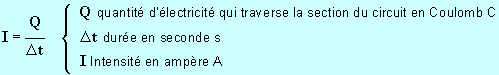 - L’intensité du courant électrique I est un débit de charge électrique.