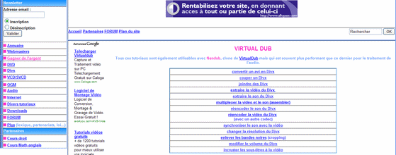 Recherche sur le site : Pour afficher les différents chapitres, on peut effectuer une recherche avec Google. |